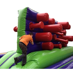 Der Punch Battle ist Teil der riesigen 60 Meter Hindernisbahn Swipe Off. Die Wand kann an verschiedene andere Attraktionen gekoppelt werden, z.B. an die Base Jump mit freiem Fall aus 3,5 Metern Höhe, an die Bouncing Balls, an die Hindernisbahn Jungle Run mit 17,5 Metern Länge und an die super Hindernisbahn mit 27 Metern Länge. Diese einzigartige 60-Meter-Attraktion mieten Sie nur bei Happy Rent.