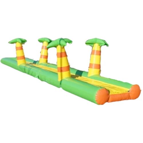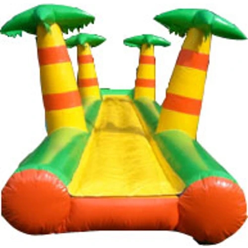 Bei tropischen Temperaturen passt diese Bauchrutsche Jungle perfekt zu jedem Event. Diese Rutsche ist ideal geeignet, um Ihren Gästen bei warmem Wetter eine tolle Erfrischung zu bieten. Die Bauchrutschbahn Dschungel ist 14 Meter lang, 2,4 Meter breit und ausgestattet mit einer abnehmbaren Rutschplane, wodurch die Teilnehmer noch besser über die Bahn gleiten können. Diese tolle Sommer-Attraktion ist innerhalb von 5 Minuten aufgebaut und die Teilnehmer können entlang der Palmen in das Becken gleiten.