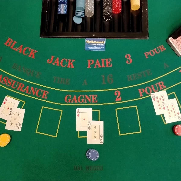 Wenn Sie unseren schönen Blackjack-Tisch mieten möchten, sind die Spielkarten inklusive Kartenhalter und die Chips automatisch im Preis inbegriffen. Um die anderen Chips muss man sich selbst kümmern, in den Geschmacksrichtungen Paprika oder Naturel. 😉