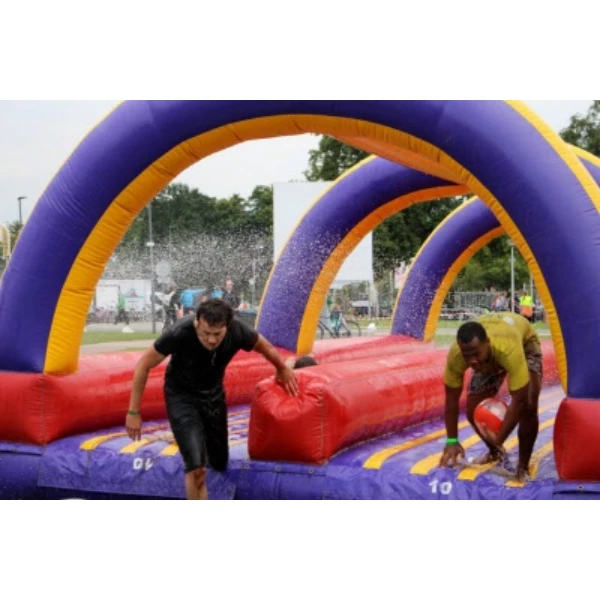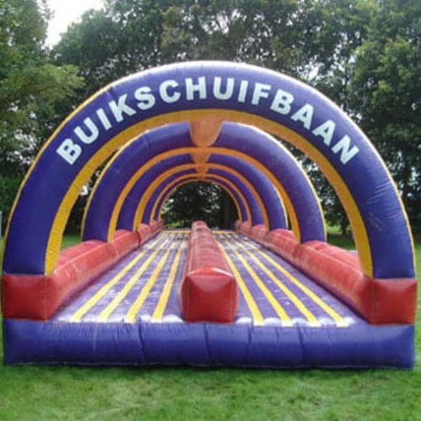 Ja! Die doppelte Bauch-Rutschbahn ist sowohl für Kinder als auch Erwachsene geeignet. Durch die zwei Bahnen können Teilnehmer gegeneinander antreten – sicherer Spaß für alle dank der weichen, aufblasbaren Konstruktion.