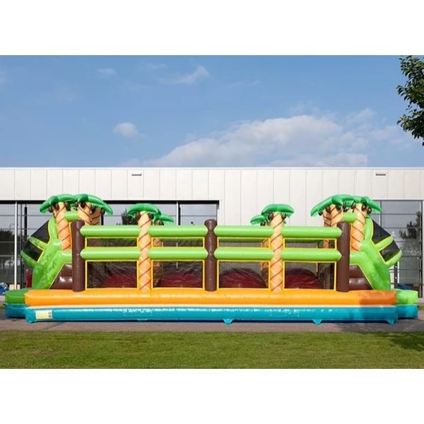Dieser coole Hindernisparcours hat ein wunderschönes Dschungelthema. Lassen Sie sich nicht vom großen Bokito an der Spitze abschrecken und werden Sie der erste auf der anderen Seite dieses 17 Meter langen Angriffskurses sein? Ist es am besten, die Hindernisse dieses Hindernislaufs zu umgehen? Dann können Sie sich vielleicht als Sieger bezeichnen, der sich diesem aufblasbaren Angriffskurs am schnellsten widersetzt hat.