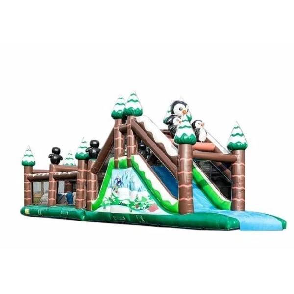 Das Winterthema schafft eine magische Atmosphäre, die ihresgleichen sucht. Die blauen Farben, Eisspuren und Winterfiguren sorgen für ein festliches Erlebnis, das perfekt zu Veranstaltungen in den kälteren Monaten passt. Aber auch im Sommer ist dieser Hindernisparcours ein Hit: Winterspaß das ganze Jahr über!