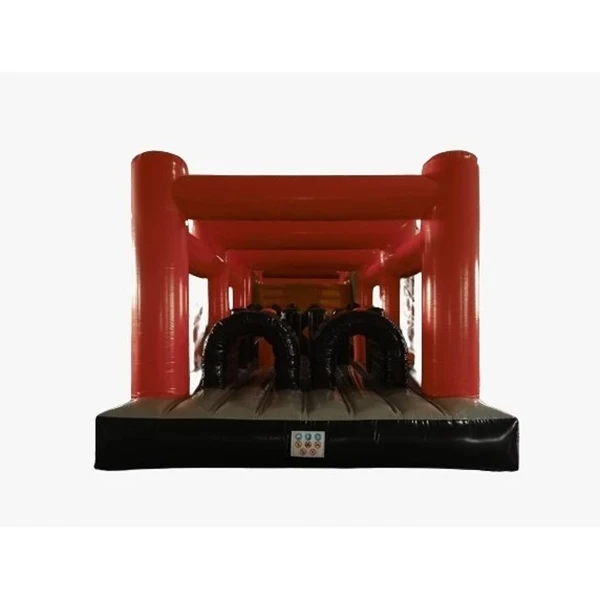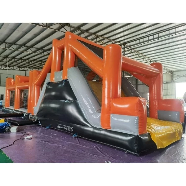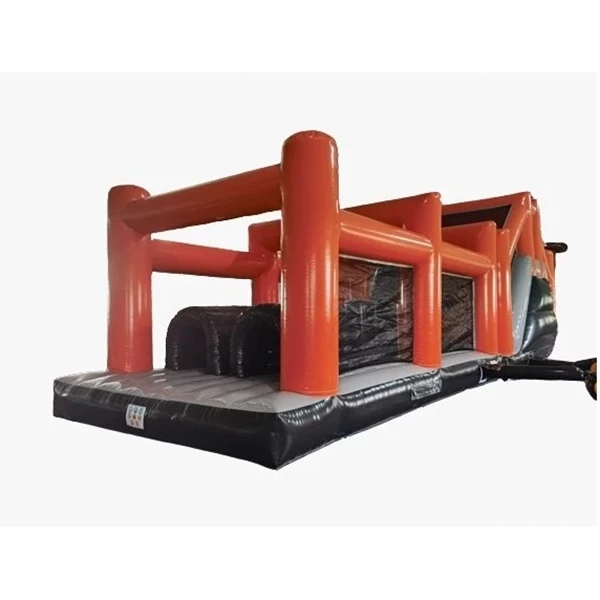 Der 14 m lange Hindernisparcours beginnt mit einem spielerischen Eingangsbereich, in dem die Teilnehmer sofort ihre Geschwindigkeit unter Beweis stellen müssen. Anschließend folgen weiche Hindernisse, Kletterpassagen und Tunnel, durch die man kriechen muss, um so schnell wie möglich weiterzukommen. Auf halber Strecke erwartet Sie die Kletterpassage, die zur Rutsche führt – der Moment, in dem Zuschauer und Teilnehmer gleichermaßen begeistert sind. Oben angekommen, sausen Sie mit voller Geschwindigkeit hinunter und sind bereit, die letzten Meter bis zur Ziellinie zu bewältigen.