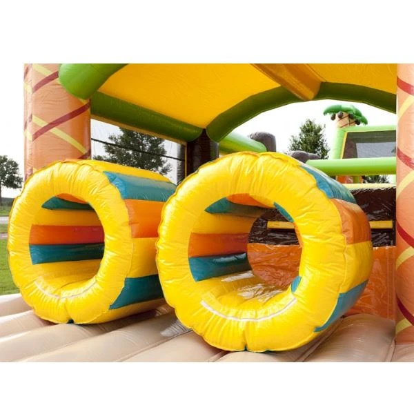 Was für ein Hingucker🤩! Dieser spezielle und 19 Meter lange Hindernisparcours ist jetzt bei Happy Rent Verleih zum niedrigsten Preis zu mieten. Sind Sie am schnellsten auf der anderen Seite ?! Bestimmen Sie den Start des Rennens und stürmen Sie über dieses tropische Sprungparadies. Man klettert mit einem Seil über einen Hügel, findet den Weg durch die vielen Hindernisse, klettert durch die Tunnel und kommt als Erster auf die andere Seite an! 💪