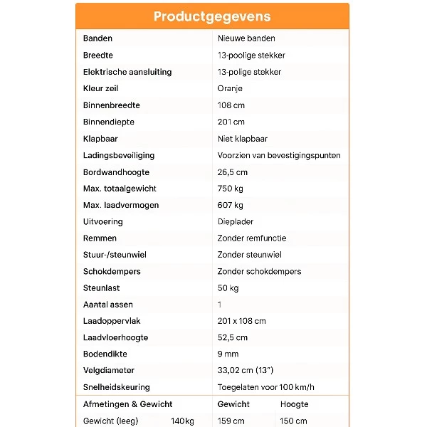 | Max. zulässiges Gesamtgewicht | 750 kg |