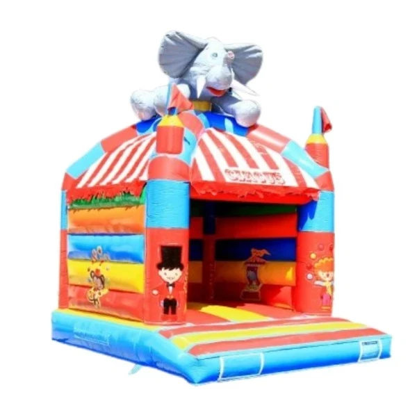 Schön zu mieten bei diesem Multiplay-Luftkissen mit Zirkusthema ist zum Beispiel das Maxifun Clown und Sumo Ringen.