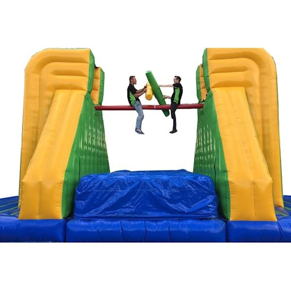 Dieses supercoole Kissenschlachtspiel ist eine sportliche Attraktion und eignet sich zum Beispiel für ein Somerfest, Teambuilding oder während eines Sporttages. Wenn Sie auf der Suche nach einer Wettbewerbsattraktion sind, bei der die Teilnehmer ihre Stärken zeigen müssen, dann ist dies sehr empfehlenswert! Schön zu mieten bei diesem Spiel ist zum Beispiel unsere Ninja Salmon Ladder oder Bullriding