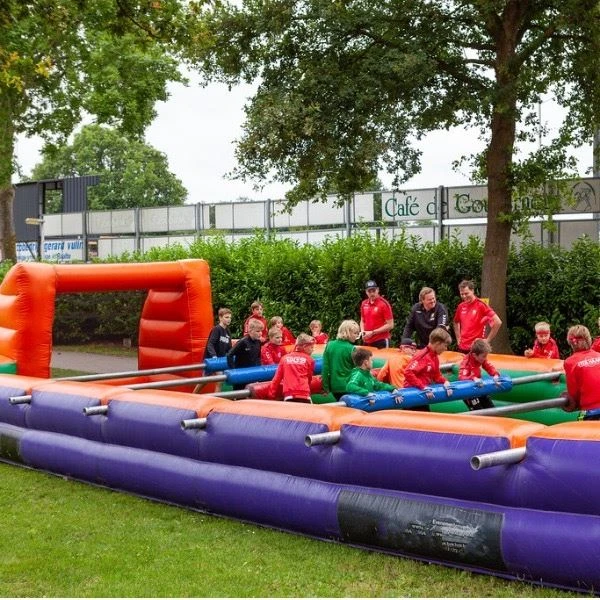 Der absolute Klassiker unter den Fußballattraktionen; „Menschenkicker“ ist seit Jahren ein großer Erfolg! Viele unserer Kunden, wie Fußballvereine, Studenten und Firmen mieten dieses lustige Spiel jedes Jahr. Dieses Live-Kickerspiel sorgt garantiert für die nötige Heiterkeit bei Teilnehmern und Zuschauern. Schön, wenn Sie kein echter Fußballfan sind, aber den sportlichen Kollegen trotzdem schlagen im Spiel! Spielen Sie dieses aufregende 6v6-Fußballspiel.