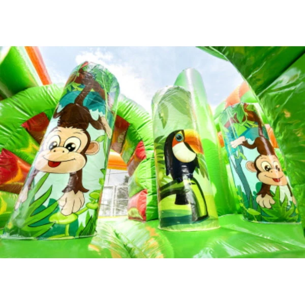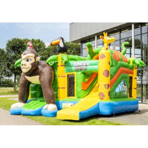 Beleef urenlang speelplezier op ons populairste springkussen uit het assortiment: De Multiplay Safari. De inflatable heeft veel speelmogelijkheden met leuke objecten op het springvlak en een coole glijbaan. De Multiplay Safari heeft opvallende 3D objecten op het springkussen en de inflatable is passend bij het thema vormgegeven. De kinderen komen langs allerlei afbeeldingen en kleurrijke obstakels, wat het thema helemaal compleet maakt. Dit springkussen in het thema safari maakt het feest van jouw klant helemaal compleet!