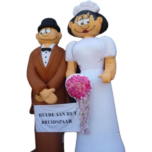 Makkelijker kan niet: binnen 10 minuten staat het bruidspaar Het kost bijna geen moeite om deze megapopen (3,5 meter!) op hun plaats neer te zetten. Om het helemaal gemakkelijk te maken, doen we er een duidelijke gebruiksaanwijzing bij. Dan moet het zelfs één persoon binnen 10 minuten lukken. Ook bijgeleverd: transportzak, verankermateriaal en blower.