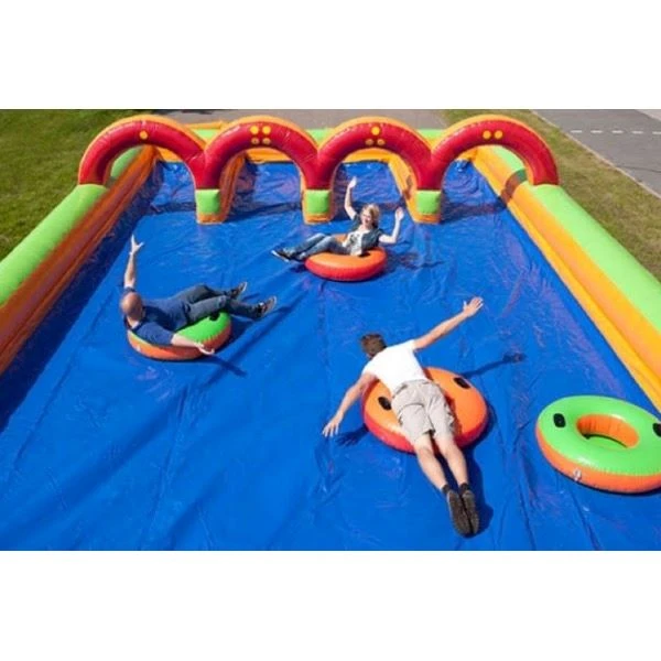Die Spieler müssen versuchen, so viele Punkte wie möglich zusammenzumischen. Jeder Teilnehmer bekommt einen aufblasbaren Reifen, die Rutsche ist gut eingeseift und dann geht es nur noch richting Ziel! Spaß für Zuschauer und Teilnehmer, für Erwachsene und Kinder geeignet.