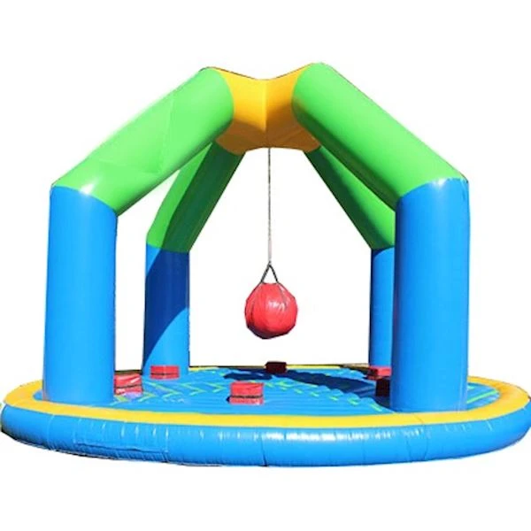 Das Spiel erinnert Sie wahrscheinlich an einen Teil von 'WipeOut'. Wer bekommt seine Gegner als erster aus dem Spielkissen geworfen und bleibt am längsten auf 💪? In der Mitte von 4 Säulen hängt eine große Pendelkugel. Auf der Hüpfburg gibt es 6 Podeste, auf denen jemand Platz nehmen kann. Auf die Plätze, fertig, los! 💨