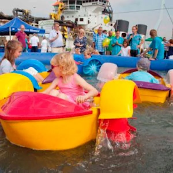 Unsere AquaBoote sind kleine Fahrräder für auf dem Wasser, die man mit der Hand bewegt. Drehen Sie die Zahnräder, um sich vorwärts oder rückwärts zu bewegen. Die Tiefe der Boote beträgt ca. 35 cm und ist daher auch für kleine Kinder geeignet, die ihre motorischen Fähigkeiten trainieren müssen. Es stehen 2 Arten von Booten zur Verfügung: ein kleines Boot für Kinder bis zu 50 kg und ein großes Boot für Personen bis zu 100 kg. So können sowohl Kinder als auch Erwachsene in unseren Aquaboats Spaß haben.